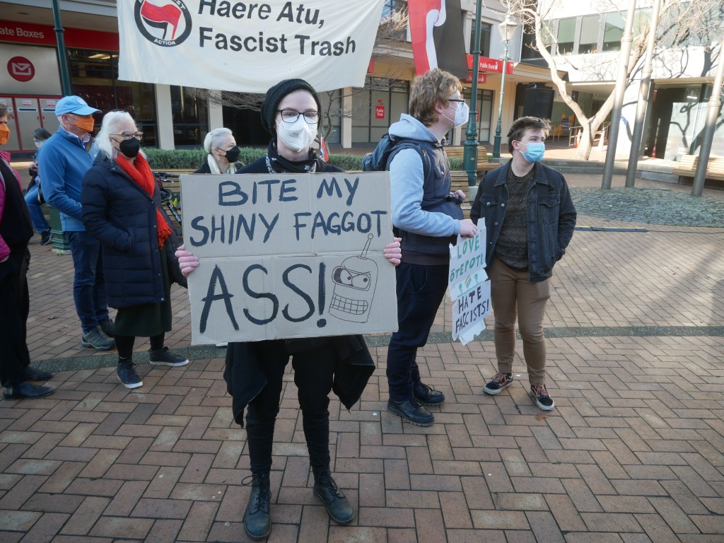 Speaking of, if fascists were indeed present on Saturday they didn’t advertise it. Make no mistake that Destiny are stalwarts of the radical right, but the radical right in this country are a fractious bunch of competing personalities and factions, of which the fascists are but one (such as Action Zealandia and whatever’s left of the National Front). That’s a good thing, in my books, as it implies the neo-fascist fringe are still mostly too disorganised and quasi-underground to poke their head above the parapet. While they’re currently benefitting from a sympathetic social movement to which they can engage in a parasitic relationship, offline they’ve been unable to participate in an organised and coordinated fashion. At least openly. A decade ago while they did not have a convenient social movement to latch onto, they were able to act out in the open in an organised and coordinated fashion (primarily in Christchurch).