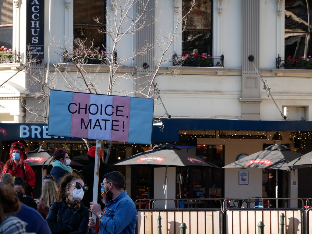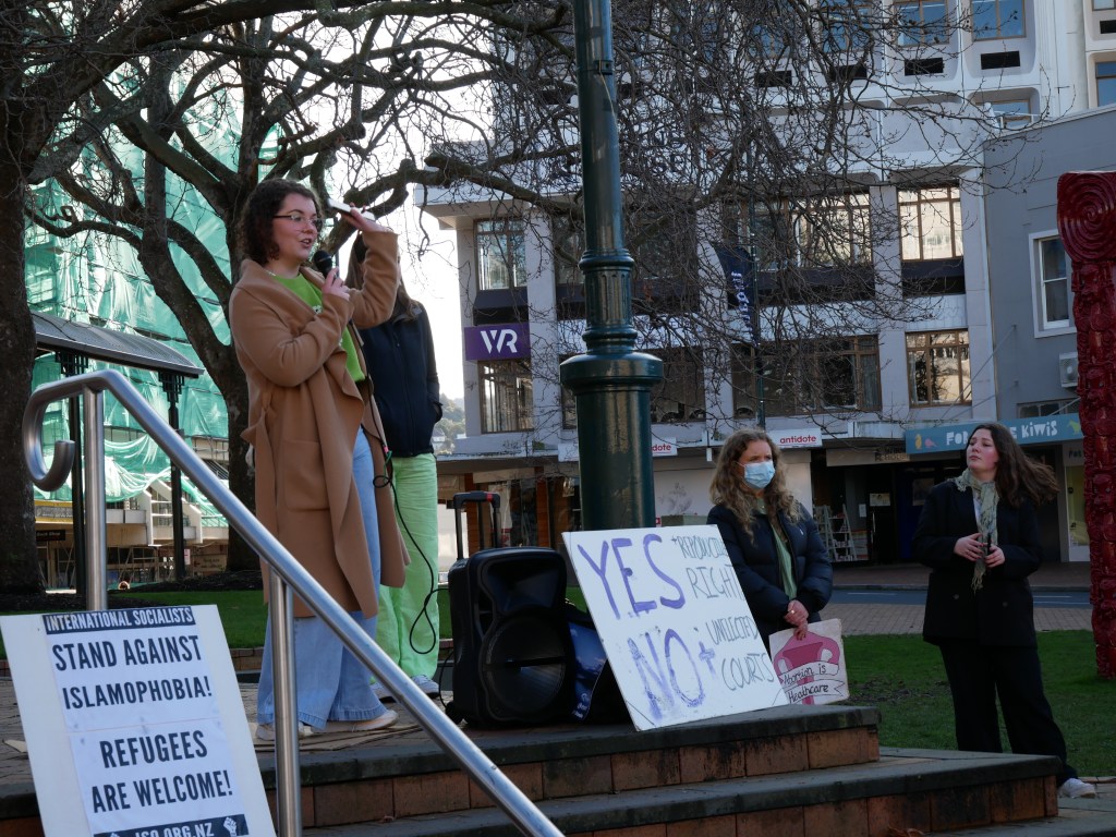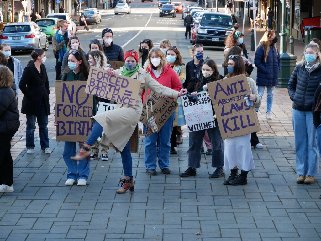 There’s not so much to say about this demonstration, primarily because there was no opposition of forces to comment on and because legal, safe, free, and readily accessible reproductive healthcare is far from a controversial position for myself or I suspect most readers of this blog. Some debate could be had as to the relevance of such events in the US to NZ, and whether this is in some way allowing Americans to set the terms of political action here. However, given the paucity of protest activity at the moment it’s hard to argue the resources are being tapped from other vital social movements. Nor could it be said that the current (and quite recent) legality of abortion in NZ is a set in stone norm, I think the way the overturning of Roe v Wade played out is lesson enough there.