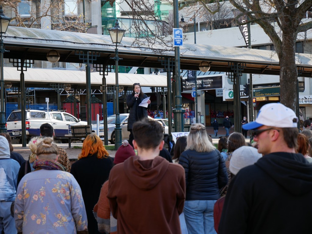 In the aftermath of the overturning of Roe v Wade and subsequent developments (both in the United States and in the National Party here in New Zealand), feminist protests offering solidarity to the US and reaffirming the commitment to maintain & expand safe, legal, free abortion access in NZ occurred in various centers around the country. Chiefly as of writing these demonstrations have been held in Auckland, Wellington, Christchurch, Napier, and Hamilton. On July 16th Dunedin joined this list, with a rally numbering somewhere over 150 in the lower Octagon.